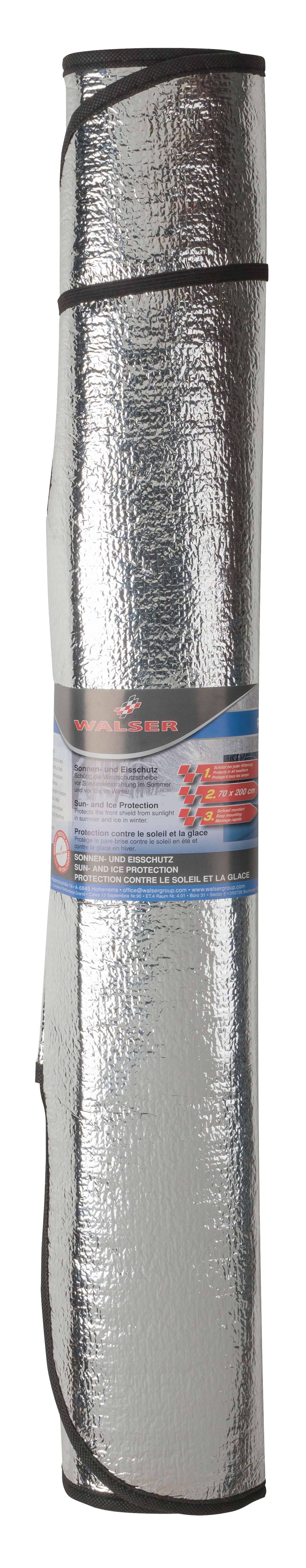 Ce produit aux dimensions ca. 200x70cm est idéal comme protection contre le gel en hiver lorsqu'il est posé à l'extérieur sur le pare-brise. En été, cette protection thermique peut également être placée à l'intérieur contre le pare-brise, ce qui empêchera le soleil de chauffer excessivement l'habitacle. Ce produit réunit ainsi deux fonctions importantes.